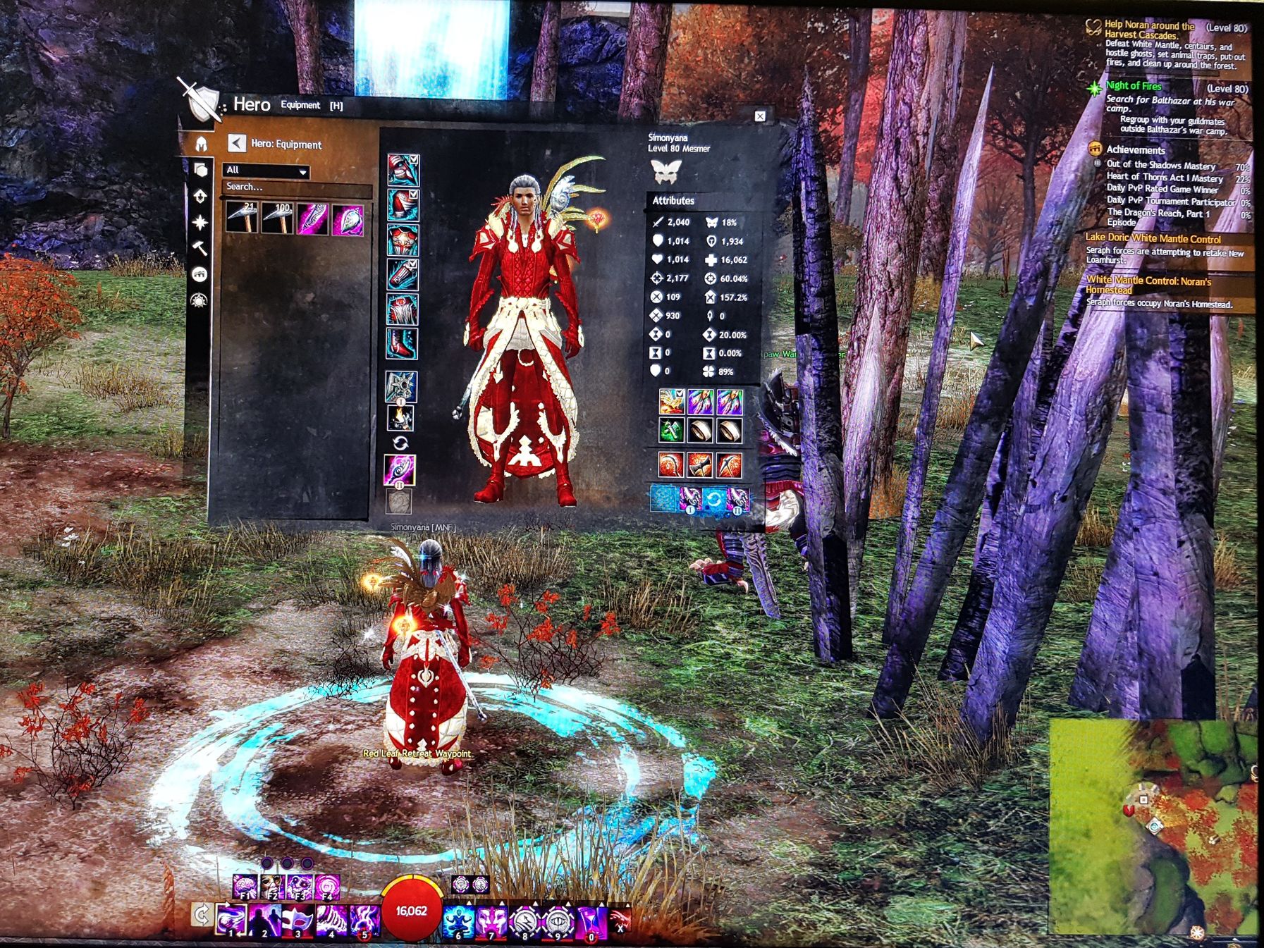 Attól függ mire akarsz építeni megint csak. Miután úgy látom, hogy "új" játékos vagy szerintem egy sima power (berserker Power - Precision - Ferocity) build jó lehet kezdésnek mesmernek (max a kedvenc fegyvereid staff és greatsword nem igazán fog belepasszolni). Persze ehhez jó lenne, ha kiraknád a Chronomancer specializációt (HoT+PoF mapokon bőven van hozzá hero point).