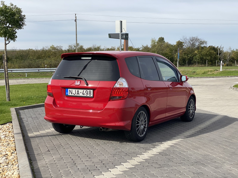 A Jazzen nem gyári felnik vannak, de annak ellenére, hogy a szélességük 6 helyett 6,5 és ET53 helyett 43, abszolút nem lóg ki a kasztni alól. Nyuszi voltam, simán választhattam volna az ET37-est is, még az is befért volna a perem alá. A gumi gyári, homológ méret.