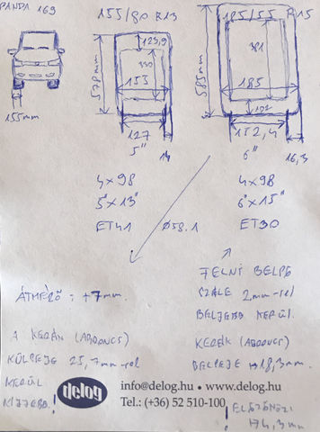 Új vagyok felni témában, úgyhogy előfordulhat, hogy bizonyos dolgokat rosszul tudok. Eddig annyira nem foglalkoztatott a dolog, de jövőre új nyári garnitúrát kell vennem, innen jött az ötlet, hogy azok már lehetnének 15"-os alufelniken. Egy 2012-es Fiat Pandáról lenne szó, de még a régi (169) típus. Jelenleg 13"-os lemezfelnik vannak alatta 155/80R13 gumikkal. (A gyári alufelnis abroncsmérete 175/65R14 lenne, ami az enyémtől most 5mm-rel nagyobb kerékátmérőt jelent.) Megpróbáltam nagyjából körbejárni a témát, és ez a típus nagyon megtetszett. A jelenlegi felni 4x98 osztású, 5Bx13 méretű, 58.1-es középfurattal és ET41 besajtolási mélységgel. Ez a MAK megegyező osztású és középfuratú, 6x15 méretű és ET30 a besajtolási mélység.