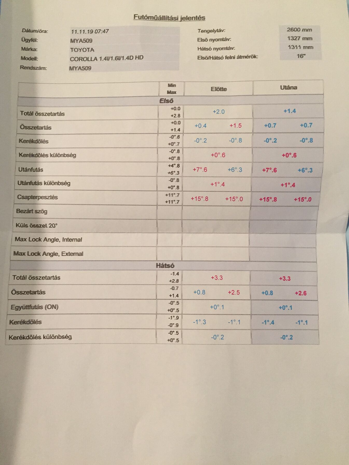Én úgy tudom, hogy mcpherson (első) esetén a csapterpesztésen nem lehet olyan könnyen állítani, ez viszi magával az utánfutást is. Belövik a gyárban aztán kopik, ahogy kopik, mert darabokra kellene szedni a futóművet.....