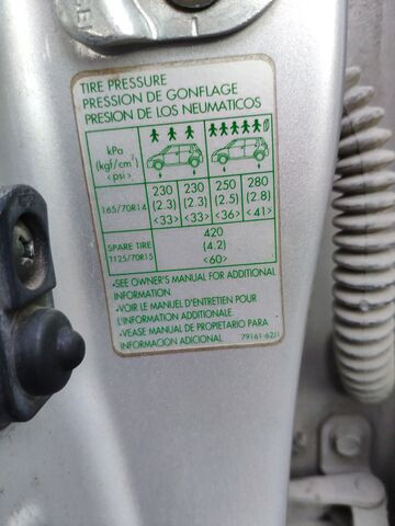 A gyári adat szerint 165/70R14 kellene, viszont az alufelni ami volt hozzá az 7Jx15H2 ET38. Valamint a rajta lévő gumi adatai: 185/60R15 84H.