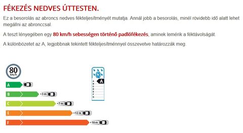 Elég csak a címkét nézni, és ha tényleg az gyári adat, akkor az A-s jobban tejesít a nedves úton.