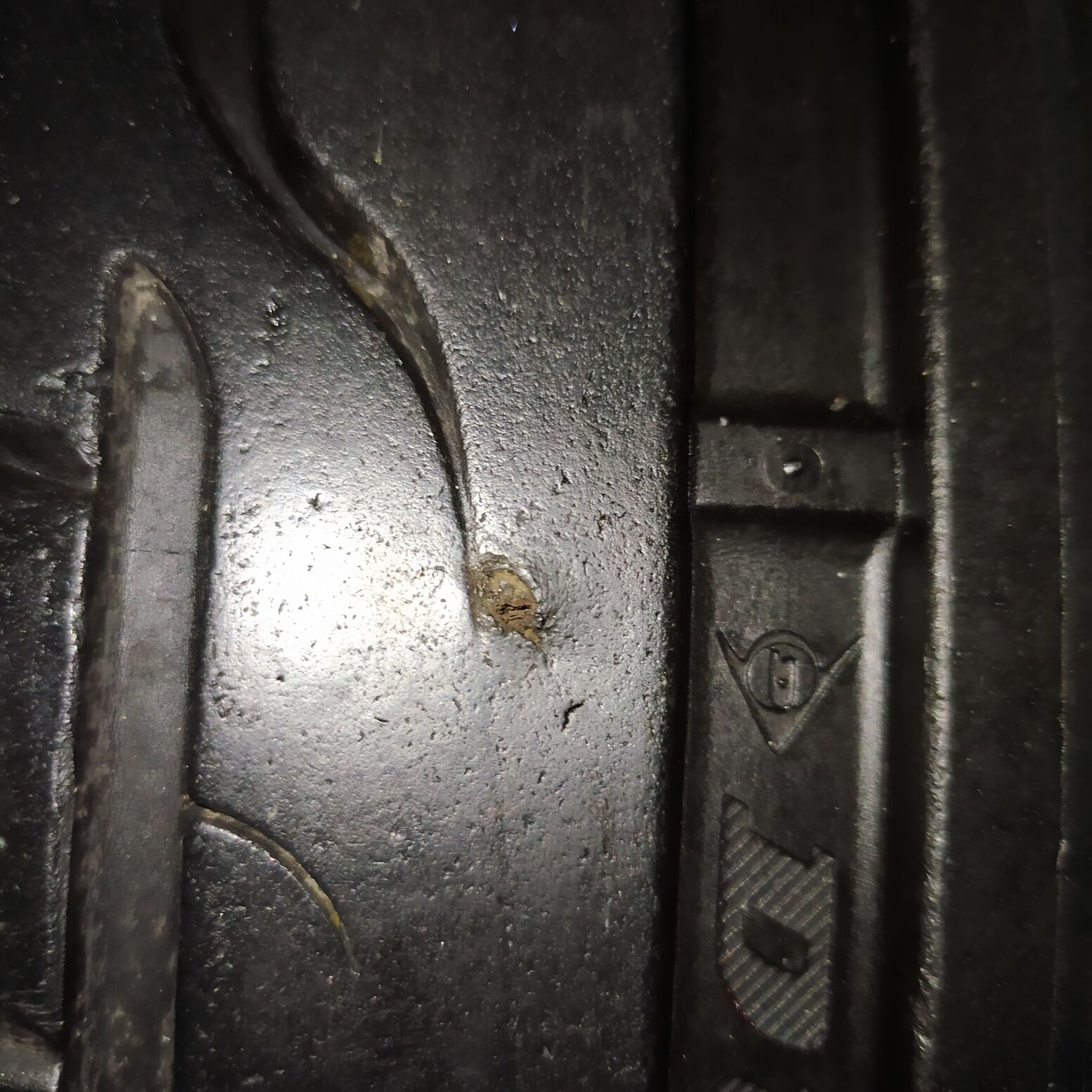 A képen látható szeget szedtem ki a gumimból. Kb. 1 centi mélyen volt benne középvonalban a futófelületen keresztben. Belülről nem látszik semmi (jelenleg nincs felnin)