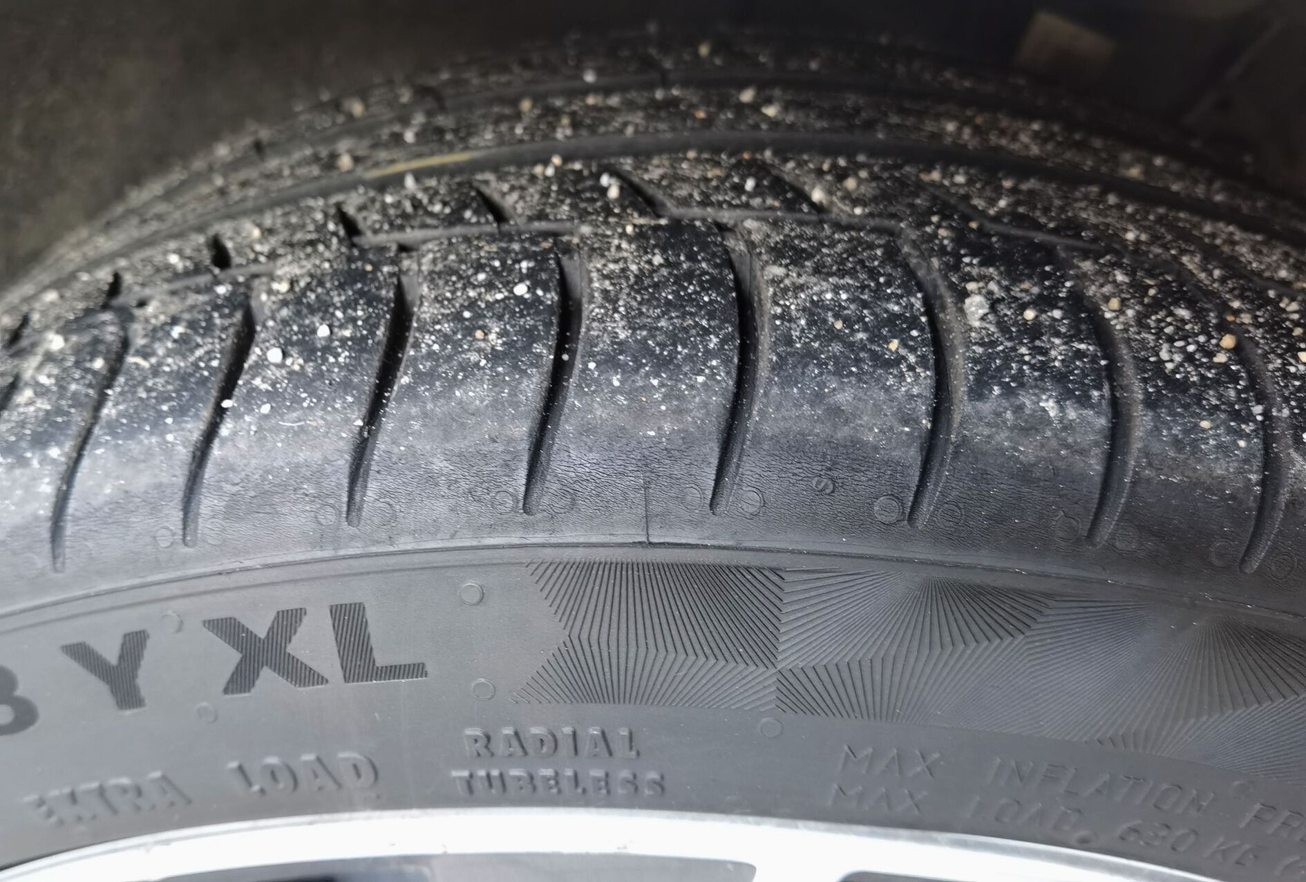 A már korábban említett Octavia-n az első tengelyen a képen látható 2021/08. heti gumiabroncs van. Nem tudom mennyit futhatott vele ...de nekem eléggé viseltesnek és repedezettnek tűnik a korához képest. Continental PremiumContact 6....