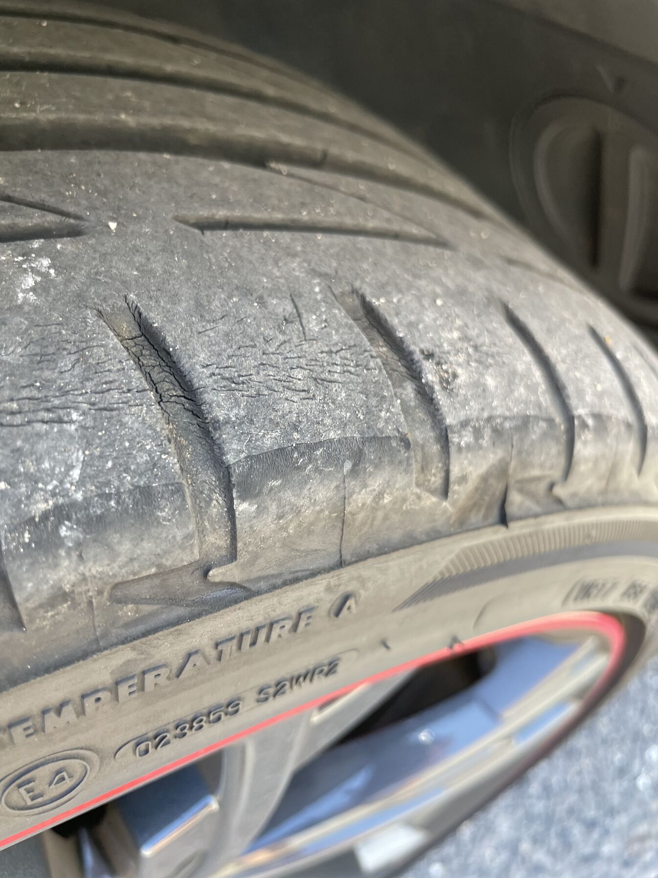 Nem csak én látom laposnak a gumit, már szomszéd jött oda, hogy lapos a gumi. Kopás nyoma nem látszik, mint kb ilyen idősen a CC-n.