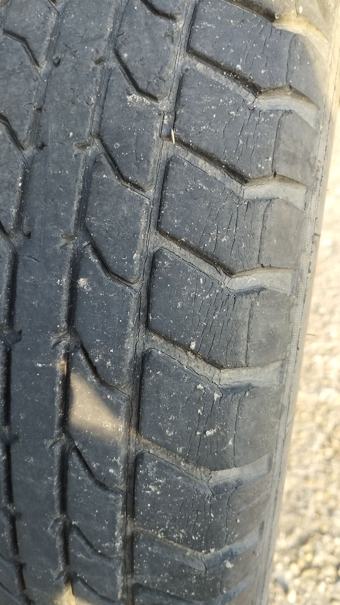Egyenletesen kopott a felülete a két első guminak, nincs félrekopva egyik sem. Egyszerűen csak jobban el van kopva/használva az egyik, de a DOT egyezik körbe mind a négyen.