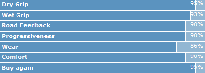 Tehát ha ezt a 3 típust nézzük, akkor a Michelin gyengébben tapad de lassan kopik, a Conti jobban tapad de gyorsabban kopik, a Vredestein pedig a középút, hasolóan jól tapad mint a Conti, de talán kopásban egy kicsit jobb.