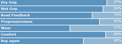 A nedves tapadas ezeknek az "olcsobb" gumiknak a gyenge pontja, meg eppen elviselhetoek vizen, de nem sokkal jobbak, mint a budget gumik... A Vredestein-nel kezdodik az, ahol mar tapadas, komfort, minoseg is van, tehat a konpromisszumok lecsokkennek, mig pl. a Fulda alig kopik, de vizen tobben panaszkodnak ra, a Vredestein T-Trac gumija kiegyensulyozottabb. 1 honapja vettem ilyet, es nem bantam meg a felarat, par ezressel dragabb volt, de vizen is olyan tapadasa van, hogy egy nagyobb fekezesnel ABS nelkul sem blokkoltak a kerekek, es idaig meg nem voltam olyan szituacioban, ahol a gumit kevesnek ereztem volna, stabil, kanyarokban is, kozvetlen a kormanyreakcio, halk, szoval csak jot tudok rola mondani, ezert ajanlom a Vredestein-t, de a Fulda es Semperit is megfelelo, a minimumot megutik.