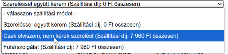 wow; a logikat értem, de ha ott szereltetem, akkor nem lenne szallitasi dij ...pedig nyilvan akkor is ugyanigy a raktarbol kell odavinni, korrektebb lenne beirni: szallitasi dij levonva a szerelesi dijbol
