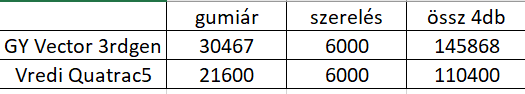 A cègem melletti gumis műhelyben meg 125 euró/db árat mondtak a gumikra. + Szerelès természetesen.