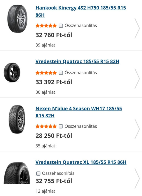 205/65 r15 méretben.271 euro a 4 gumi.