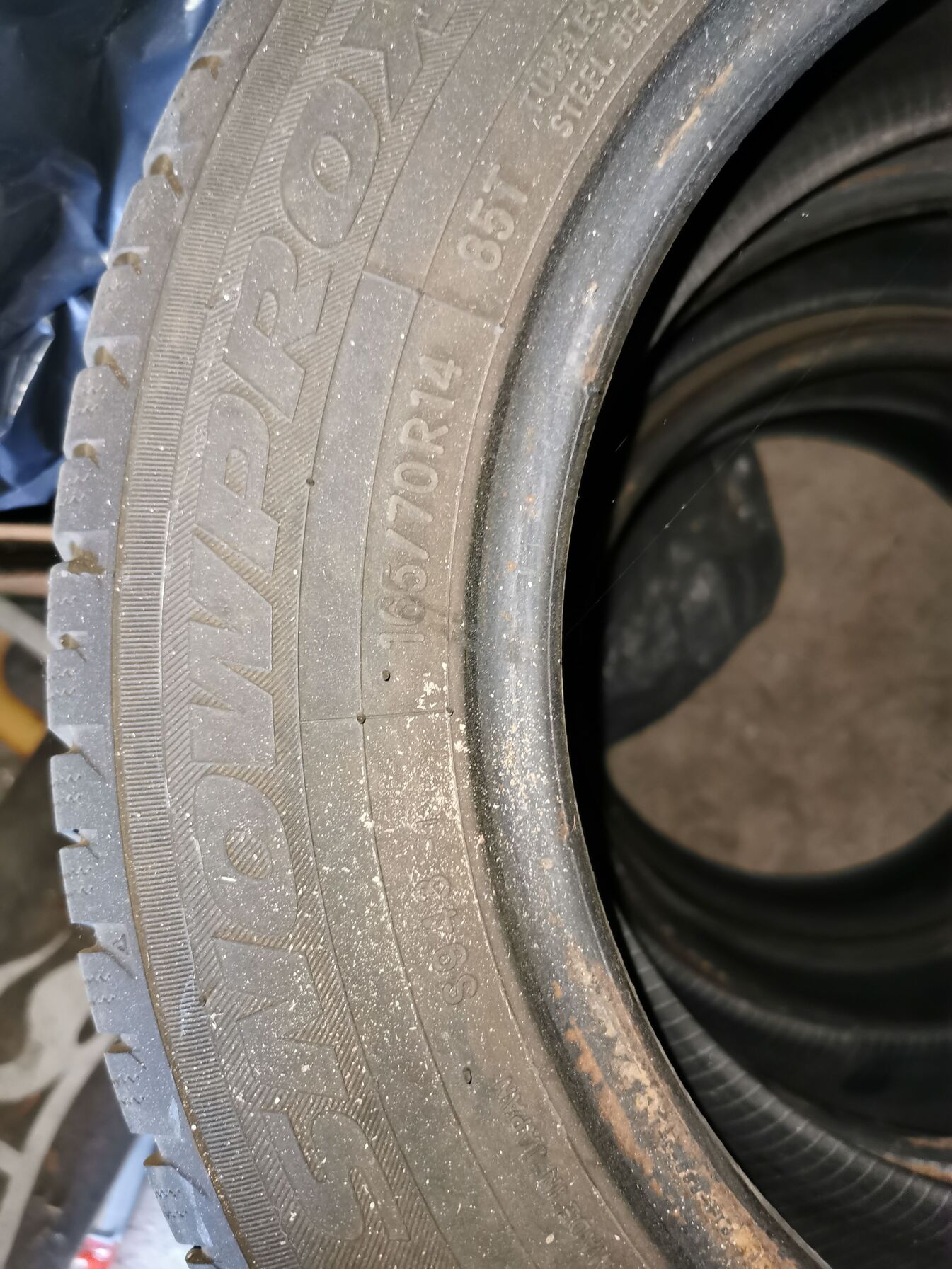 Illetve van még E11 Corolláról egy szett 165/70 R14 Toyo Snowprox téli, ez már futott egy nyári szezont, alacsony a profilmélysége, de eladásra szánt autóra, pótkeréknek, vagy virágot ültetni még jó lehet.