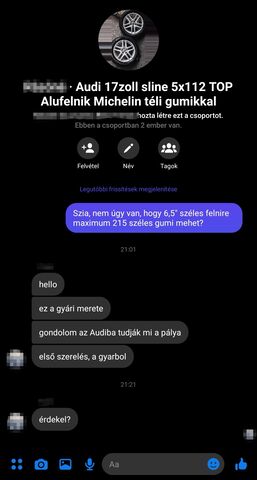 Kérdezem a méreteket, típust , hát pont ugyan az mint az enyém, ugyan az a típus, amit a keskenysége miatt akarok lecserélni, mert a 225 sok a 6,5 szélesre.