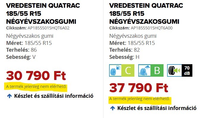 Amúgy mindegyik linken más terhelési és sebességindexű Quatrac van, de lényegtelen, mert a Jazz követelményeit mind meghaladja.