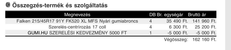 szerelés 17400 a 4 db.