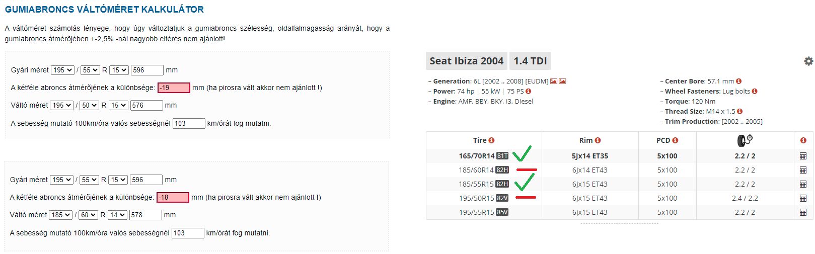 Azonban én úgy értelmezem, hogy 195/55r15 helyett tennél fel 195/65r15-öt. -> Nem OK. -