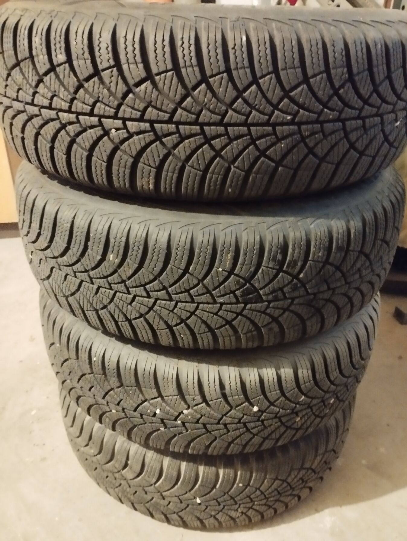 4db Goodyear Ultragrip (2015.10) (5mm körül) lemez felnin ami évente rozsda átalakító festékkel át volt festve. 185/65 R14. Ez mennyiért tudom most eladni így szettben kb? -