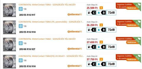 Megérkezett nekem is a Continental WinterContact TS860 205/55 R16 91T a gumidot-tól. Pénteken rendeltem, kedden hívott a futár, de nem tudtam aznap átvenni. Ma szerdán vettem át a postán (kértem, hogy adja le és majd ott átveszem).