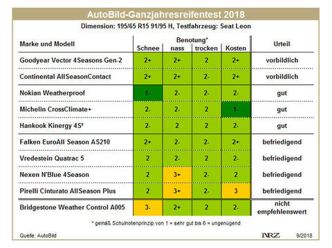 Pontosítsunk: 27 négyévszakos gumit teszteltek, és ebből a 10 legjobbat vetették alá egy alaposabb tesztnek.