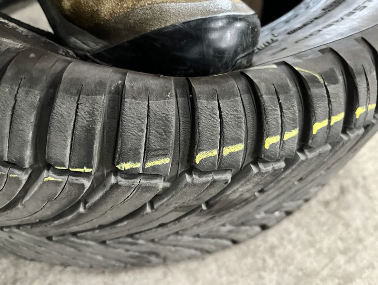 Az alábbi képet nemrég találtam a tyrereviews oldalon, egy user szomorúan írta, hogy kb. 9 hónapos BS Turanza AS6-okkal jött ki egy vizes körforgalomból és oldalazott a kocsi. Megnézte a gumikat és megdöbbent.