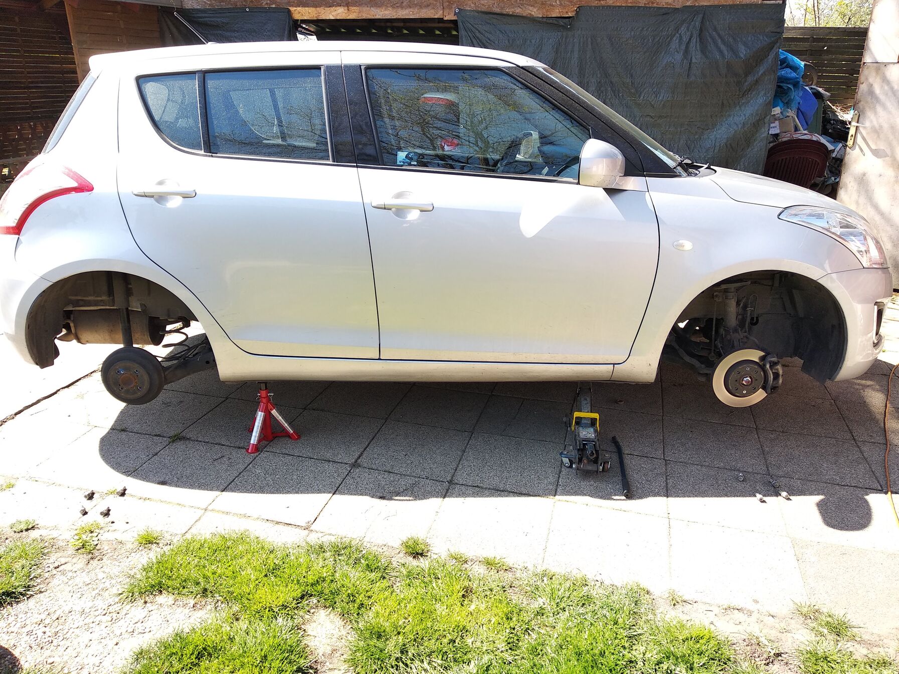 Viszont emeltem a kis krokodillal, hogy mondom átrakom a kerekeket. Koppra kitoltam az emelőt és még mindig talajon volt a gumi