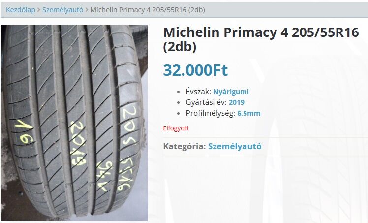 Költségkímélés miatt úgy döntöttem (mint ahogy a fenti kérdéseim és hozzászólásaim is igazolják), hogy a 2 Michelain Primacy 4 91V 6-6.5 profilmélységű gumik mellé használt, kb. ugyanilyen gumit veszek. Találtam is 2019-es gyártásút, igaz 94V súly/sebesség indexszel: