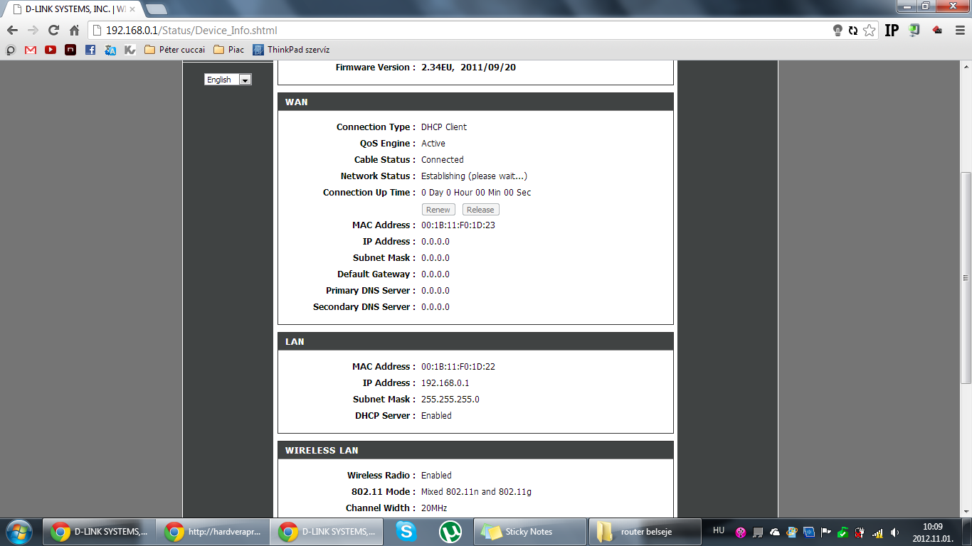 megjött a DIR635, de nem fogja fel, hogy DHCP és nem ad netet...b@ssza meg