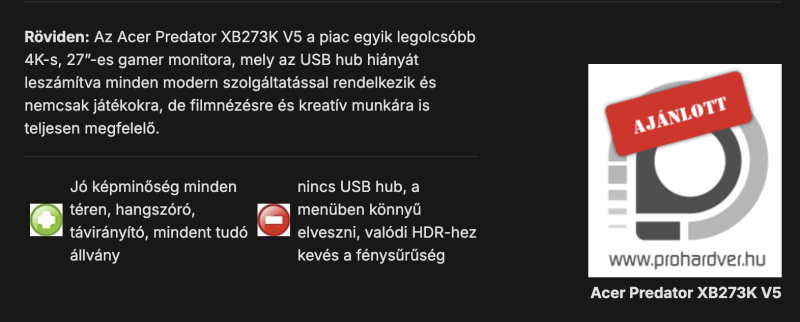 Én örülnék egy fogyasztás mérésnek is. Minimális fényerőn, átlagos beltéri fényerőn fényerőn, max fényerő, HDR fényerő. Szerintem a mai világban alap kellene lenni valamilyen energia hatékonysági mérésnek. Plííz integráljatok valamilyen mérési metódust a tesztbe.+ Ilyen monitornál milyen a 1080P? Van valamilyen ügyes felskálázás vagy csak 1:2 fel van duplázva, úgyhogy olyan "recés", mint egy 1080P 27" monitor?
