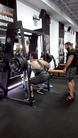 Ja, hát ma nem volt ott. Megbeszéltük, hogy hétvégén a Muscle Beachen lesz Kathi Béláékkal, szóval a heti lábat egyedül csinálom meg. Amúgy nem mindig ilyen, 200-nál már kevésbé tudok figyelni a technikára. Legközelebb megpróbálok jobban figyelni, hogy ne pucsítsam túl.