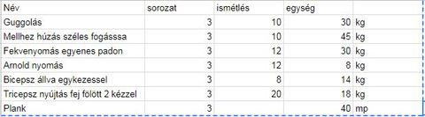 Végül ez lett az "A" edzésterv. Viszont a hátat nem tudtam eléggé stimulálni, próbáltam kisebb és nagyobb súllyal is. Valószínűleg nem az igazi a technika.