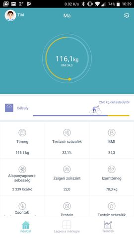Na megvolt az első mérés a mérleggel. Nem tudom mennyire hiteles a súlyom, mert kb 3 liter vizet megittam ma már, de nem bírtam megállni, hogy ne álljak rá.
