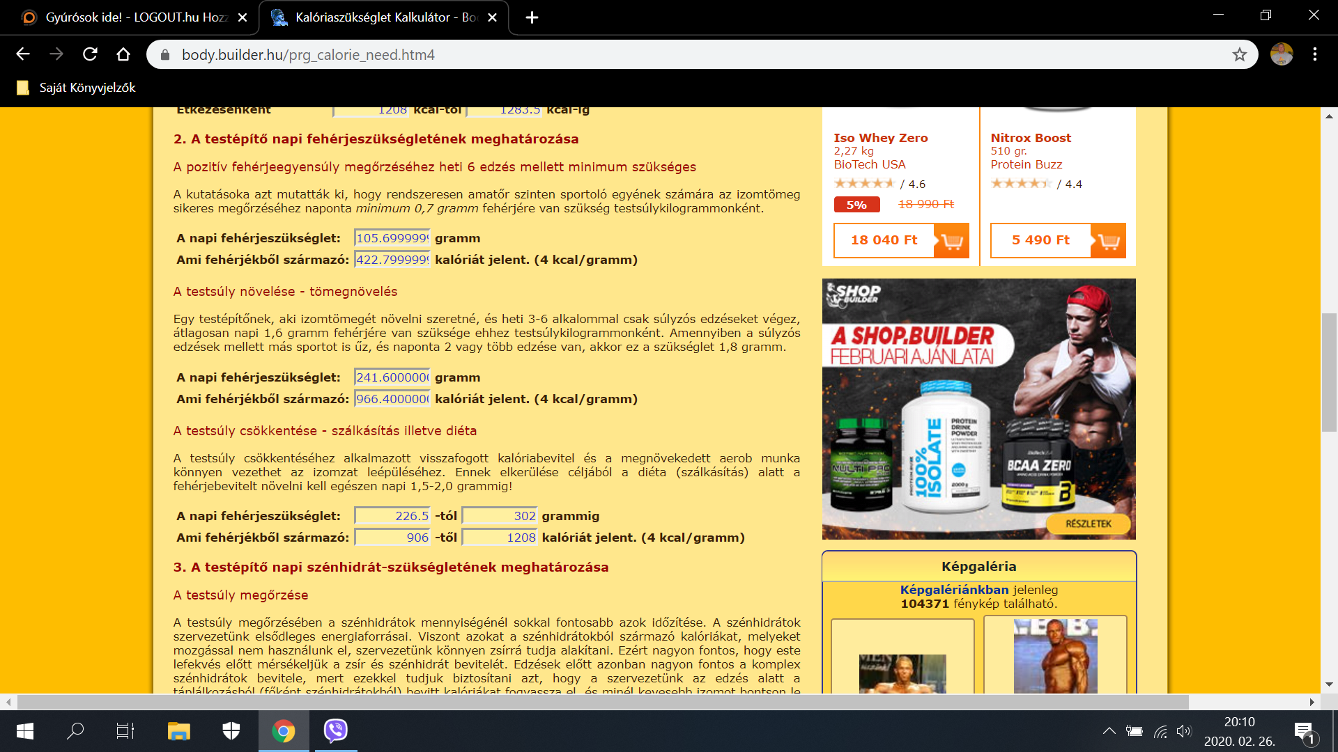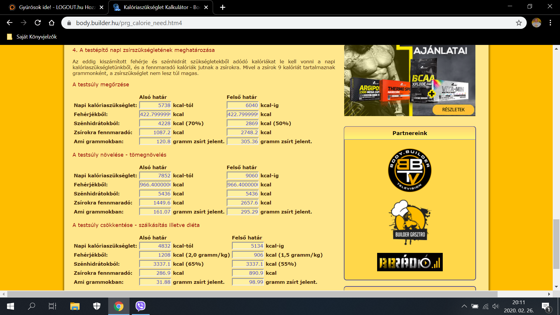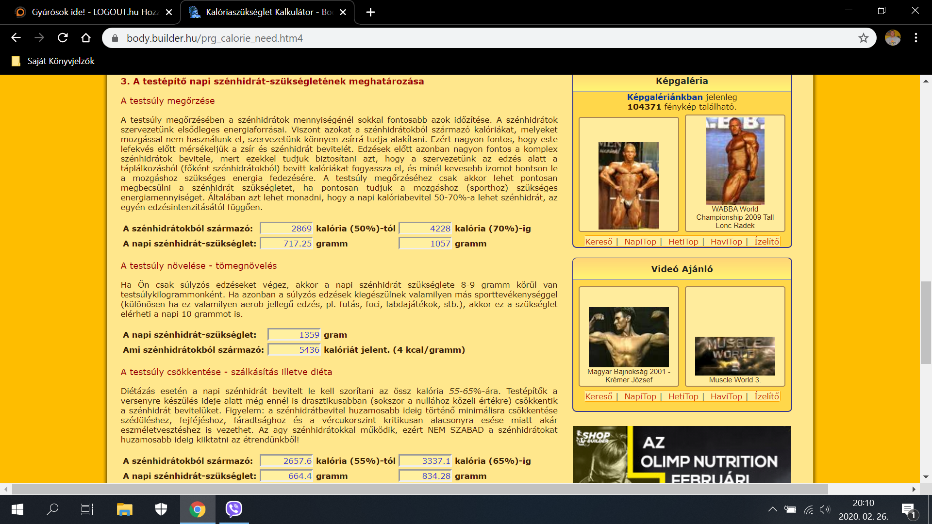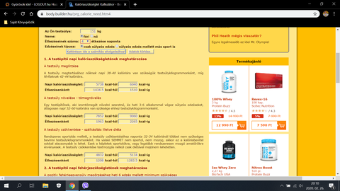 ha nem viszel be elég vizet, akkor nem működik megfelelően az anyagcseréd, azaz az egy dolog h nem annyira egészséges, de még a fogyás is lassab tőle! (Mellesleg aki nem fogyni hanem izmosodni akar, annak is ugyanannyira fontos, izommunkához is kell...)aztán ami még nekem nagyon szemet szúrt (ketos a szemem na  ) az a jóféle zsírok hiánya. Ez se tesz jót neked! (Pl teszto szintenk se de másnak se) a diétába 50g-nyi zsírt legalább szoríts be! Ez legyen jóféle (avokádó, mandula, dió, mogyoró, lazac, ilyesmik) nem kell sok, de valamennyi zsírt vigyél be! Lehetőleg egyszeresen telitetlen, vagy omega 3-t tartalmazót. ) az a jóféle zsírok hiánya. Ez se tesz jót neked! (Pl teszto szintenk se de másnak se) a diétába 50g-nyi zsírt legalább szoríts be! Ez legyen jóféle (avokádó, mandula, dió, mogyoró, lazac, ilyesmik) nem kell sok, de valamennyi zsírt vigyél be! Lehetőleg egyszeresen telitetlen, vagy omega 3-t tartalmazót.egyébként nekem túlzónak tűnik ez a kalkulátor, nem értem honnan szedi a számokat...