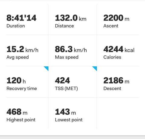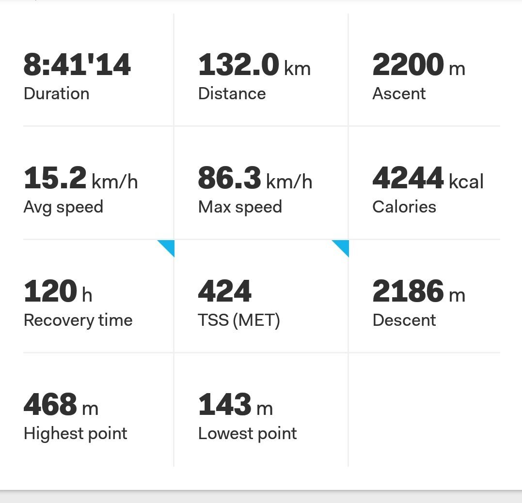 üzenetéreamúgy ez a 130 km nekem is úgy jött ki, hogy keresztül tekertem erdőnek a déli-bakonyon, felmásztam gyalog a tóti-hegyre (ment a trekker végig, szóval ezért alacsony az átlagom), megtekintettem a világ legjobb panorámáját, letekertem badacsonyba a strandra, felmásztam a hegyre, áttekertem szépkilátóra, kajáltam egyet, visszatekertem szigligetre a hegyet megkerülve, és onnét már csak 50 km-t kellett megtennem hazáig.