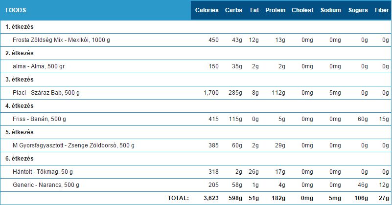Megmozgatta a fantáziám ez a vega dolog. Gyorsan csináltam egy elképzelt napra egy összesítést Myfitnesspalben, ez lett belőle: