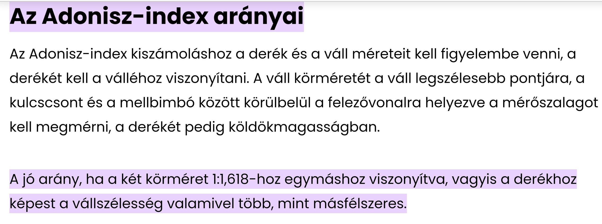 Arányos, esztétikus a formád szerintem, de hálás lehetsz a genetikádnak is. Tippre megfelelhetsz az Adonisz-index elvárásainak, vagy ahhoz valahol nagyon közel. De akinek jó a fizikuma, tudja úgyis.