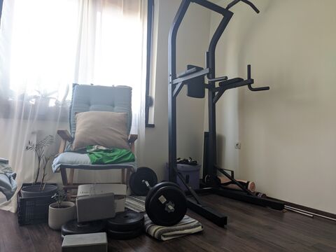 Kiöregedtem a helyváltoztatásos sportból, meg már fájtak is a tagjaim, fotelban ülni meg nem tudtam ezért elkezdtem otthon edzeni