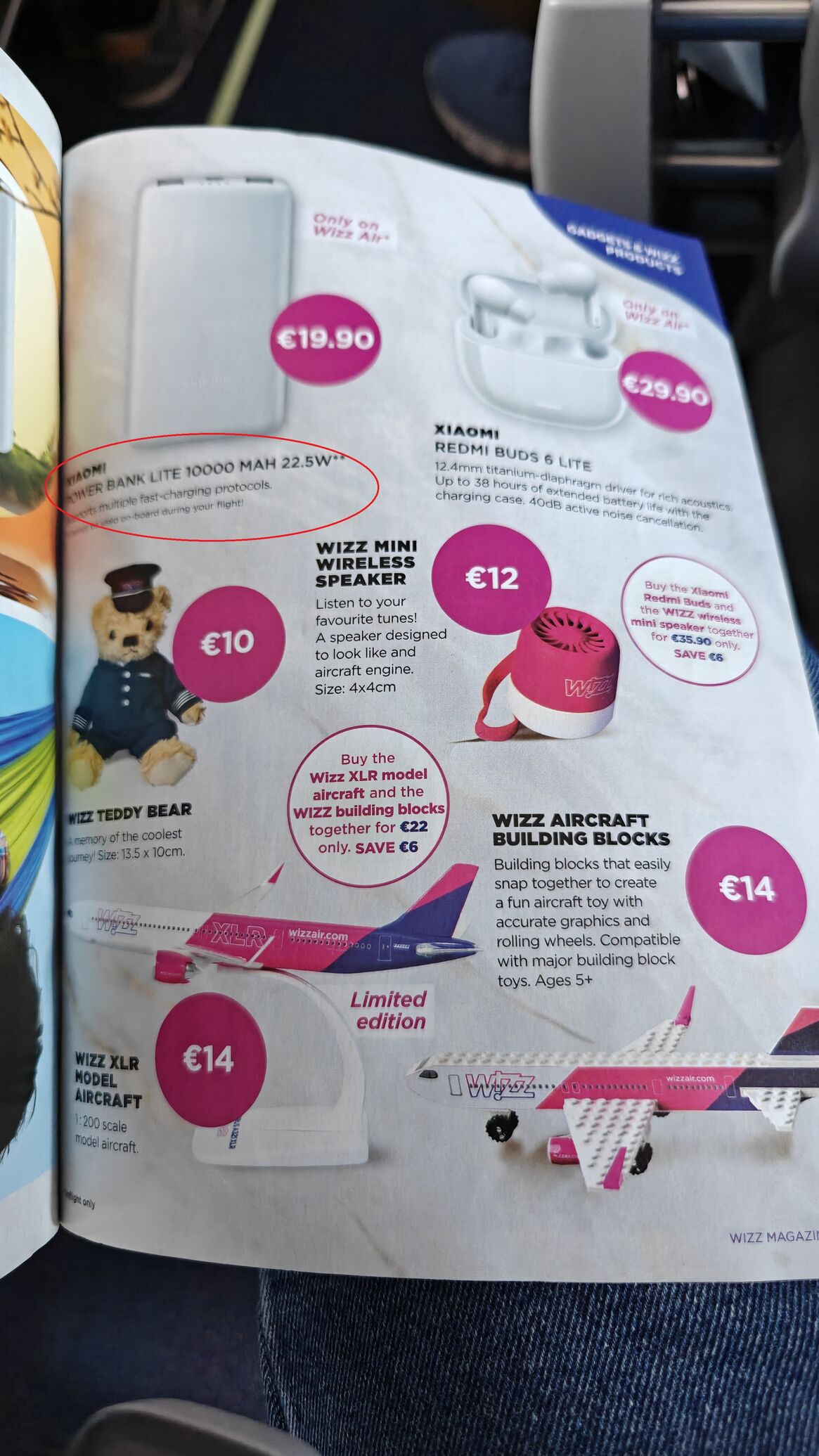 De a legjobb az, hogy pl WizzAirnél a fedélzeti guruló shopban vehetsz 10.000 mAh-ás Xiaomi powerbanket 20 euróért. Miközben a 2,5 órás út alatt kb négyszer mondták be, hogy powerbank-et használni tilos.