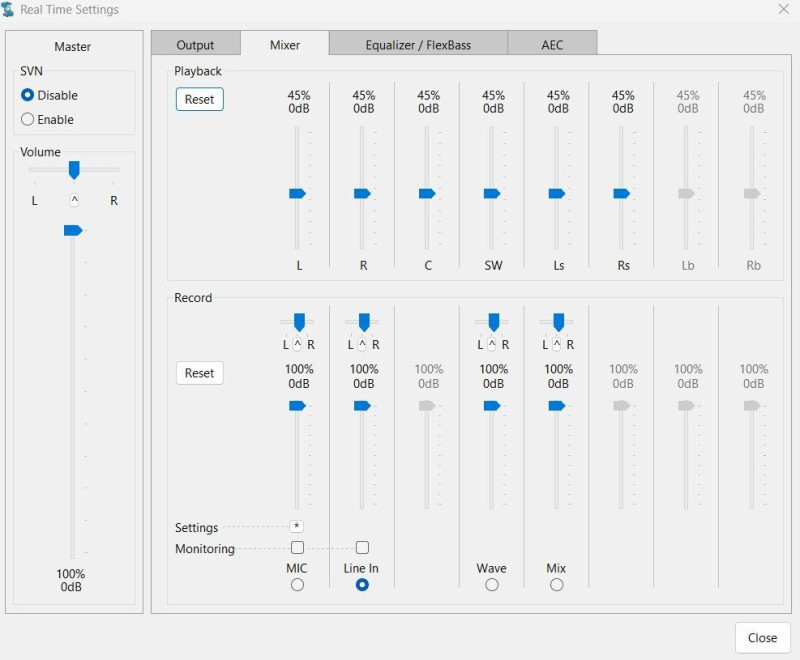 Az a problémám, hogy ha a master csúszkát a maximumra állítom, akkor sem elég hangosak a filmek. Tehát marad a Playback hangerő állítása, de ahogy a képeken is látszik, 45% állásban vannak 0dB-n. Ha feljebb tolom őket, akkor +12dB-ig mennek, de ha jól gondolom, ilyenkor túlvezérlem a hangkártyát.