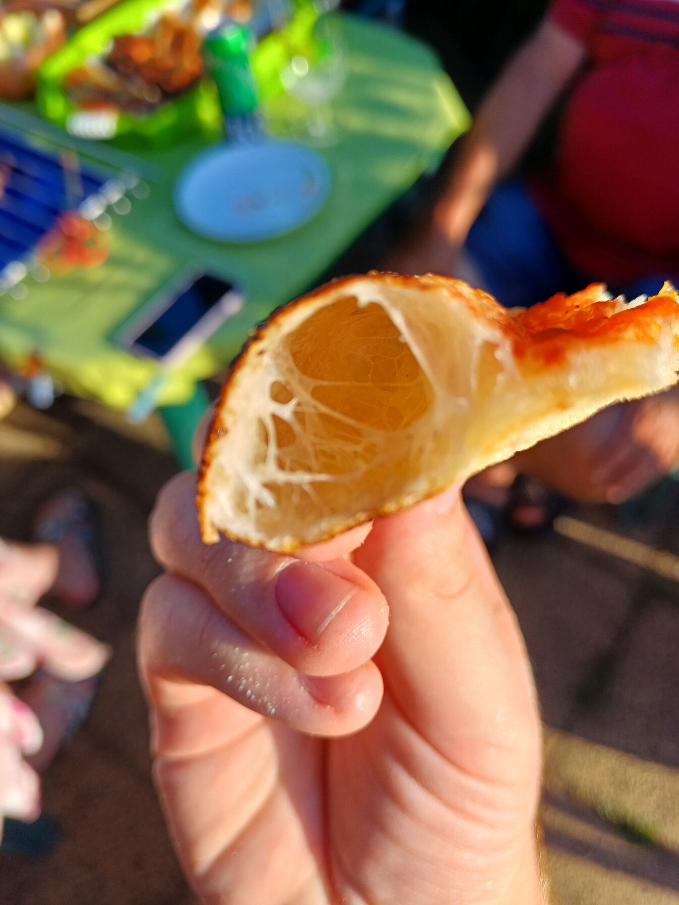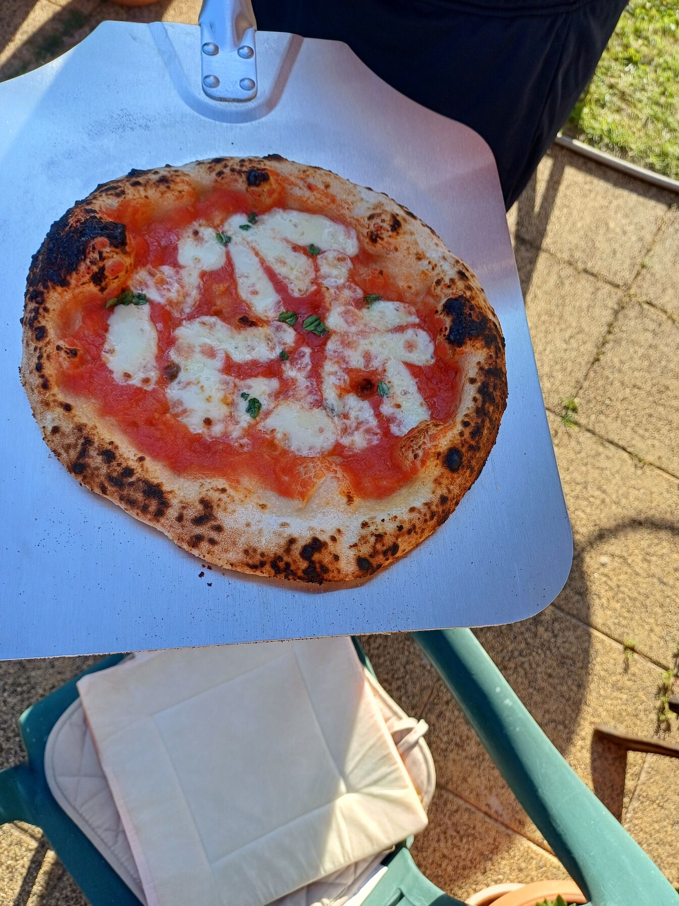 A nap végére sikerült egy pizzát túl mélyre vetnem a kemencében, közel a lángokhoz ami elkezdett égni, egy kedves rokon, "Majd én kiszedem" alapján a pizza lapáttal teljesen rátolta a gázégőre, szóval most jön egy jó hosszú kínkeserves takarítás.