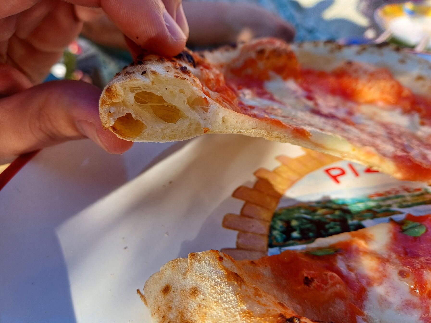 Ilyet nem tapasztaltam vele szerencsére. A tészta tapintása, nyújtása számomra nem tért el egy piros Caputohoz képest. Azt hozzá kell tennem, hogy kizárólag poolishos tésztát készítettem vele, illetve kétszer próbálkoztam a kovászos tésztával is. De azzal sajnos nem igazán boldogulta, teljesen kezelhetetlen és szakadó lett az eredmény. Ez nem tudom, hogy a liszt hibája, vagy az enyém.