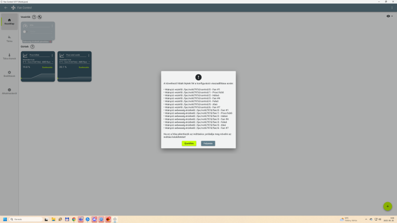 A Fan Control ilyen összeomlós program? Egyik napról a másik ez fogad belépéskor. Amiket anno szépen összeraktam, már nem működik. Nem látja az érzékelőket.