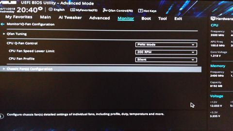 Én a chassis fan q-fan source-t cpu-ra állítanám, mert így a proci hőfokát veszi alapul. Hatékonyabban segíti a hűtését, bár egy picit magasabb is lesz az rpm. Ezzel együtt a lap hőmérsékletét is jobban csökkenti. Nyáron a nagy melegben a profilt azért állítsd vissza standardra.