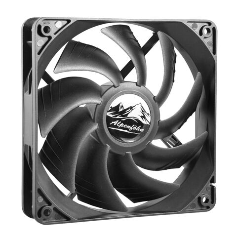 Na most ha nekem a procihűtő bordán ez a 9 lapátos 1500RPM 111m3/h Alpenföhn ventiltátor van amit éjszaka 850-900RPM-en használok és már búg a folyadékcsapágya