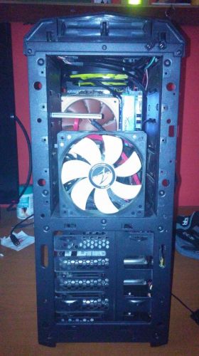 Most úgy fest a ventilátor arzenál, hogy egy lepa elől szív, alul egy zalman szív, hátul egy zalman kifele szív, felül két akasa kifele szív. De mivel egyetlen egy optikai meghajtóm sincs, oda is szeretnék egy valamekkorát, lehet az egyik noctua 14-es befér és az is szívni fog, közvetlenül a proci és a ramok felé.
