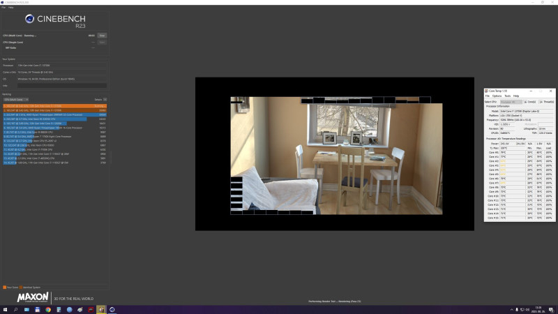 Először az m25-el futtattam a CineBenchet. Kicsit hűvösebb volt kint is, a szobában is.