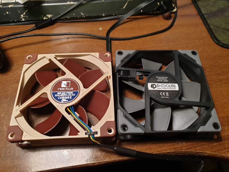 A Nocuta ugye csak 2000 max. De kevesebb levegőt is visz a Noctua, ráadásul gatya statikus nyomással, meg szétfele fúj, az ID-Cooling meg előre.