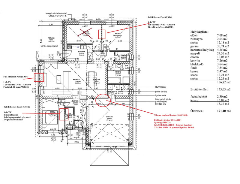 Szerver gép is adott, de az lent van a garázsban, a kábel innen fentről megy oda is.