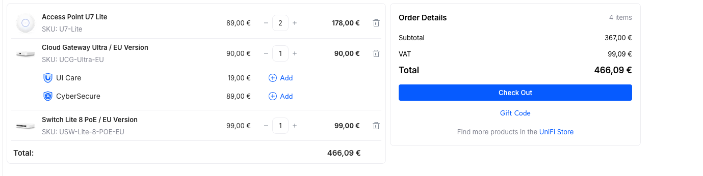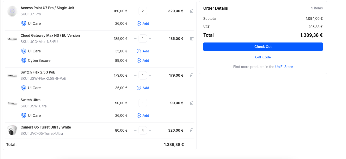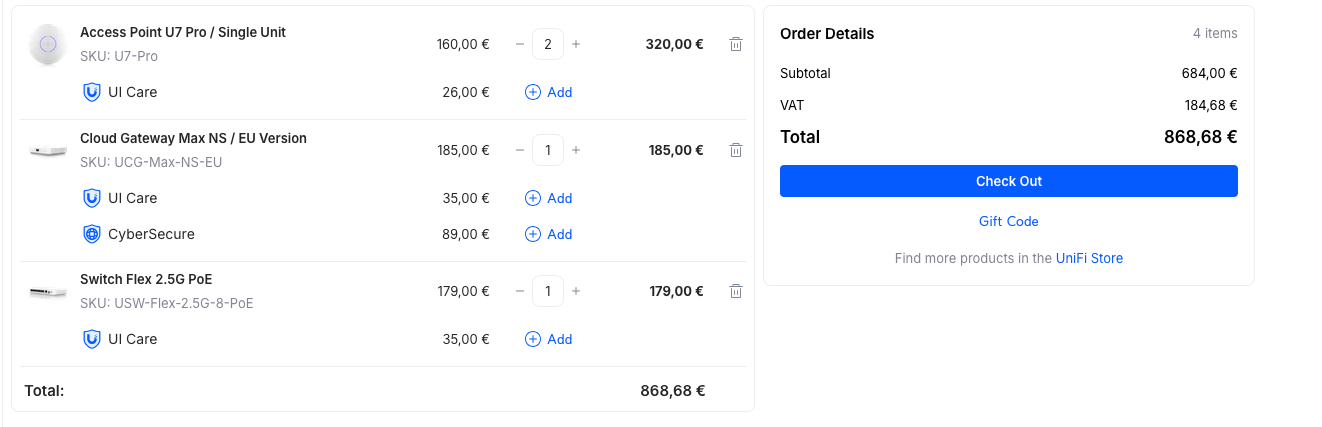 Ez így nézne ki képen: [kép]4. Érdemes az europai Unifi Store-ból berendelnem, hátha olcsóbban jönne ki? Illetve a kiterjesztett UI Care(5 év gari) miatt?