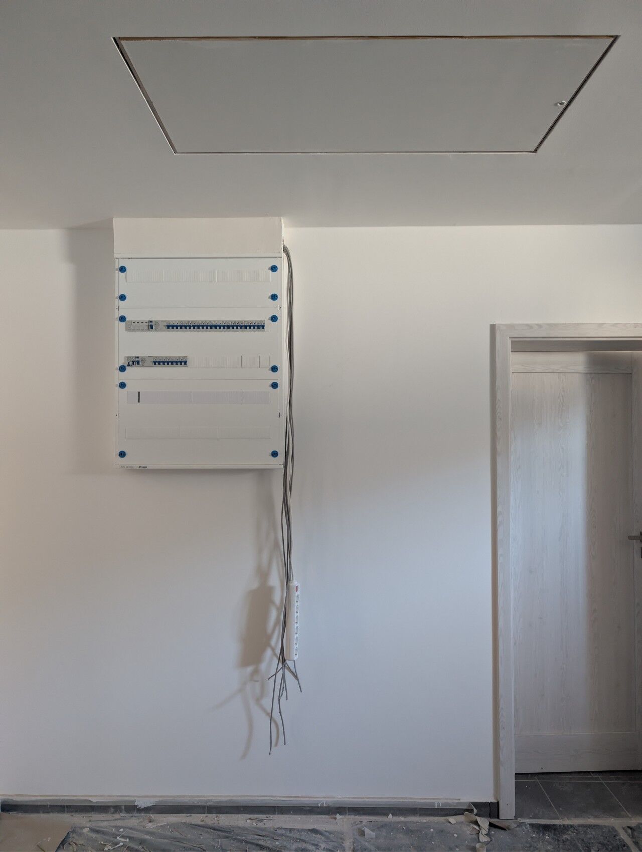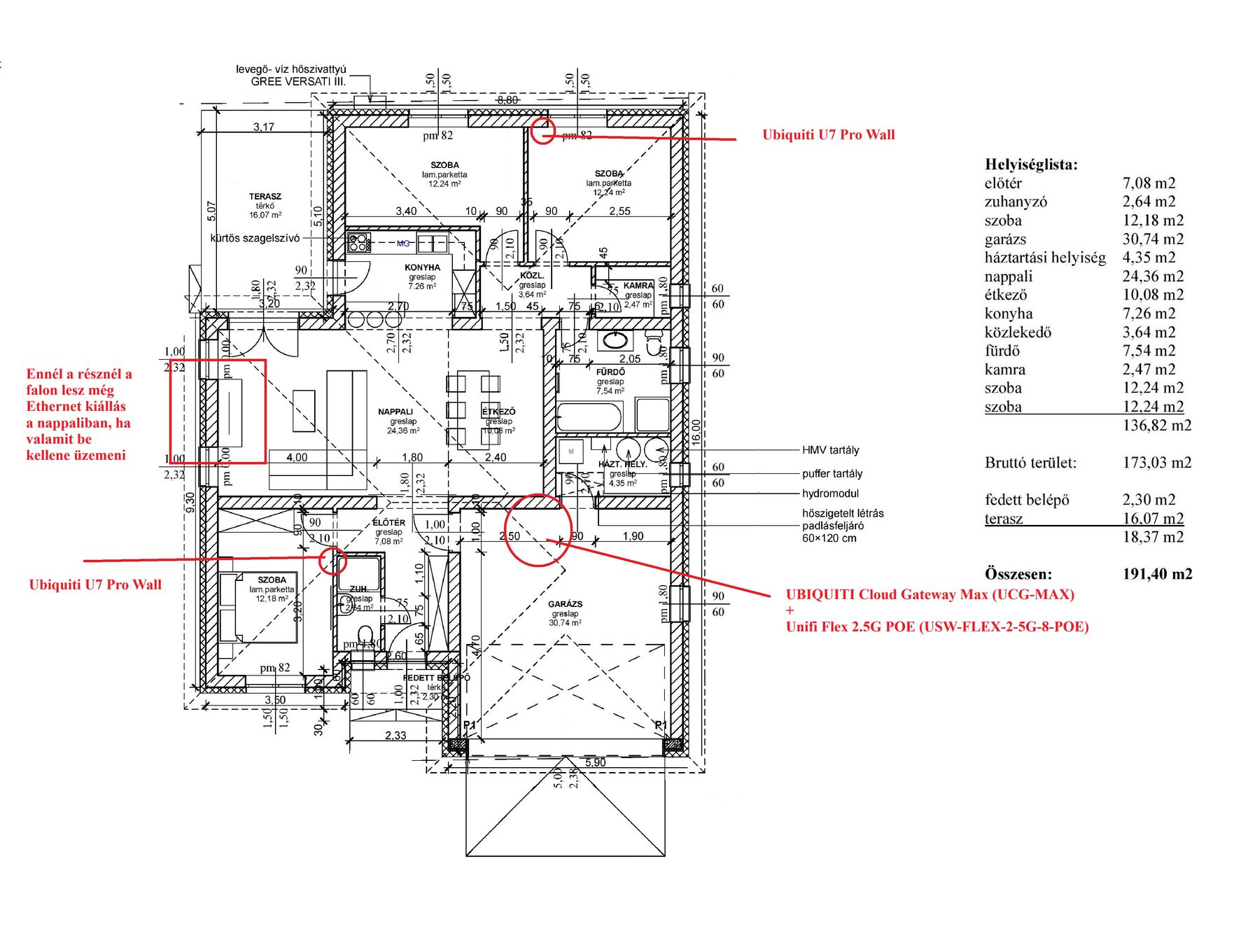 Sajnos itt mint láthatjátok középen és alul lesz ethernet lehetőség. U7 Pro Wall-t az alsóba tervezem dugni így hogy semmi bútor ilyesmi nem menjen elé, hanem szabadon álljon.Garázsban ide lenne a falra, ahol a elosztoszekrény és a fal között lesz majd 90 cm-es helyem: [kép]