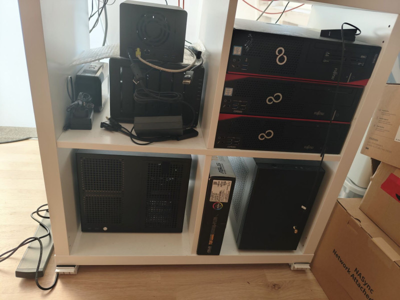 Méret, hang nem annyira mérvadó, mivel a szerver gép az alsó szinten, garázsban van. Fogyasztás sem, napelemes túltermelés miatt.